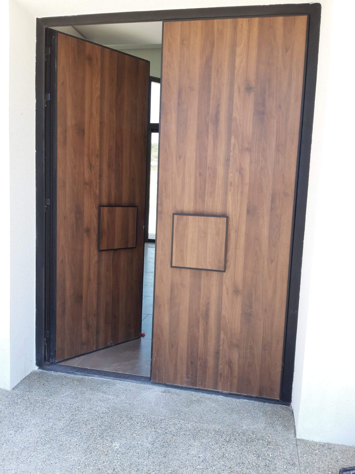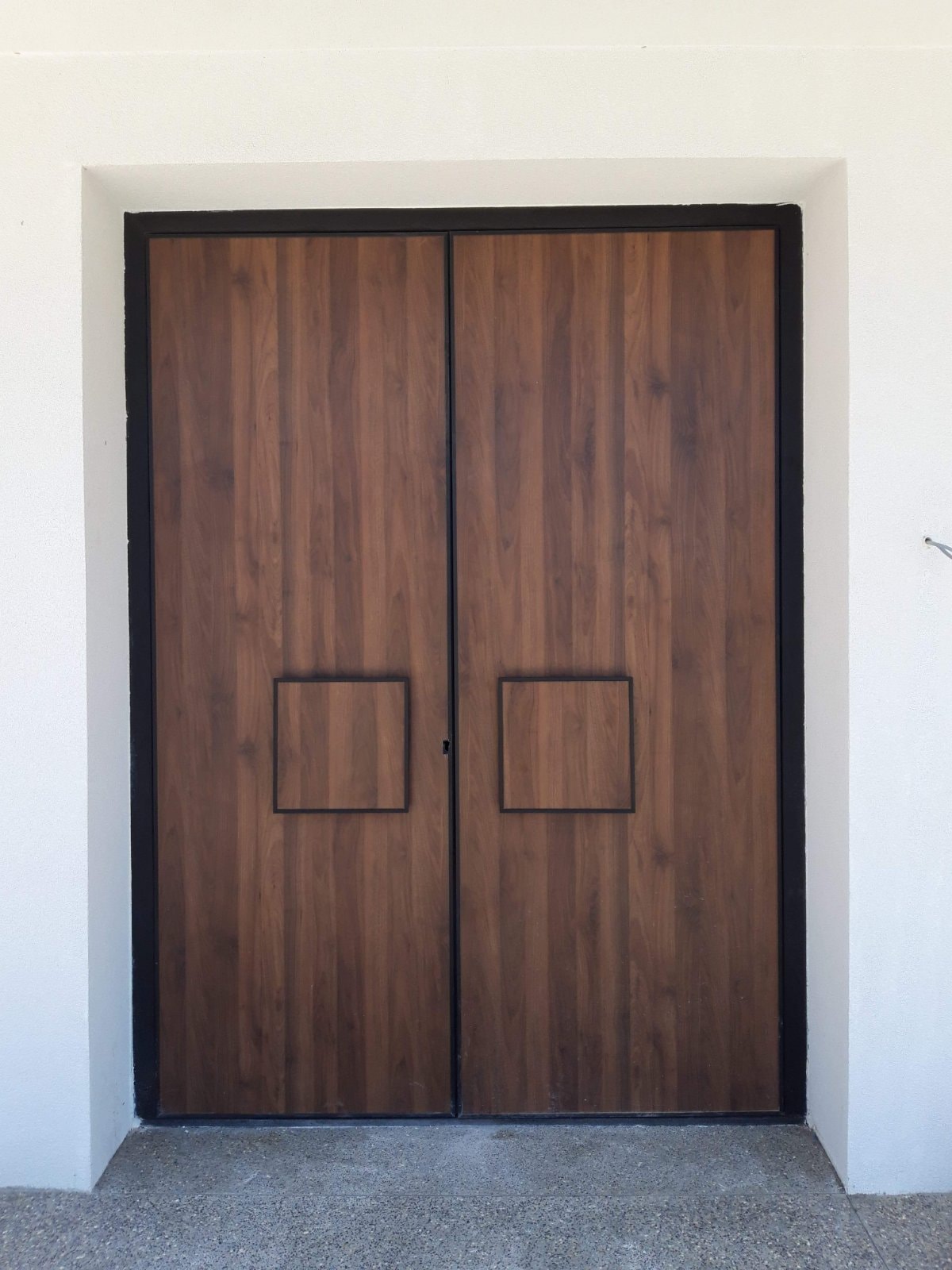 Θύρα εισόδου επενδυμένη με αλουμίνιο.
