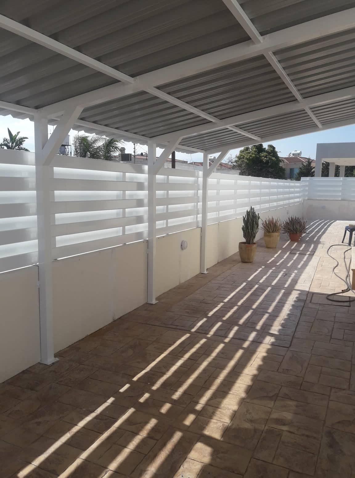 Συρόμενη καγκελόθυρα, περίφραξη και στέγαστρο αλουμινίου.