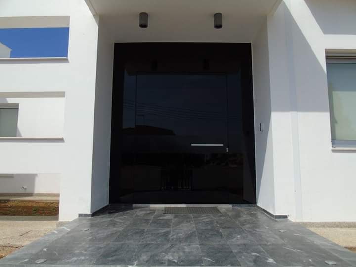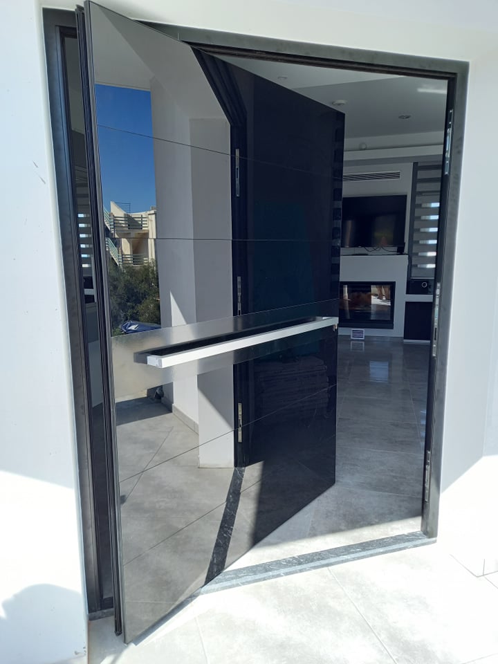 Θύρα εισόδου PIVOT επενδυμένη με γυαλί.